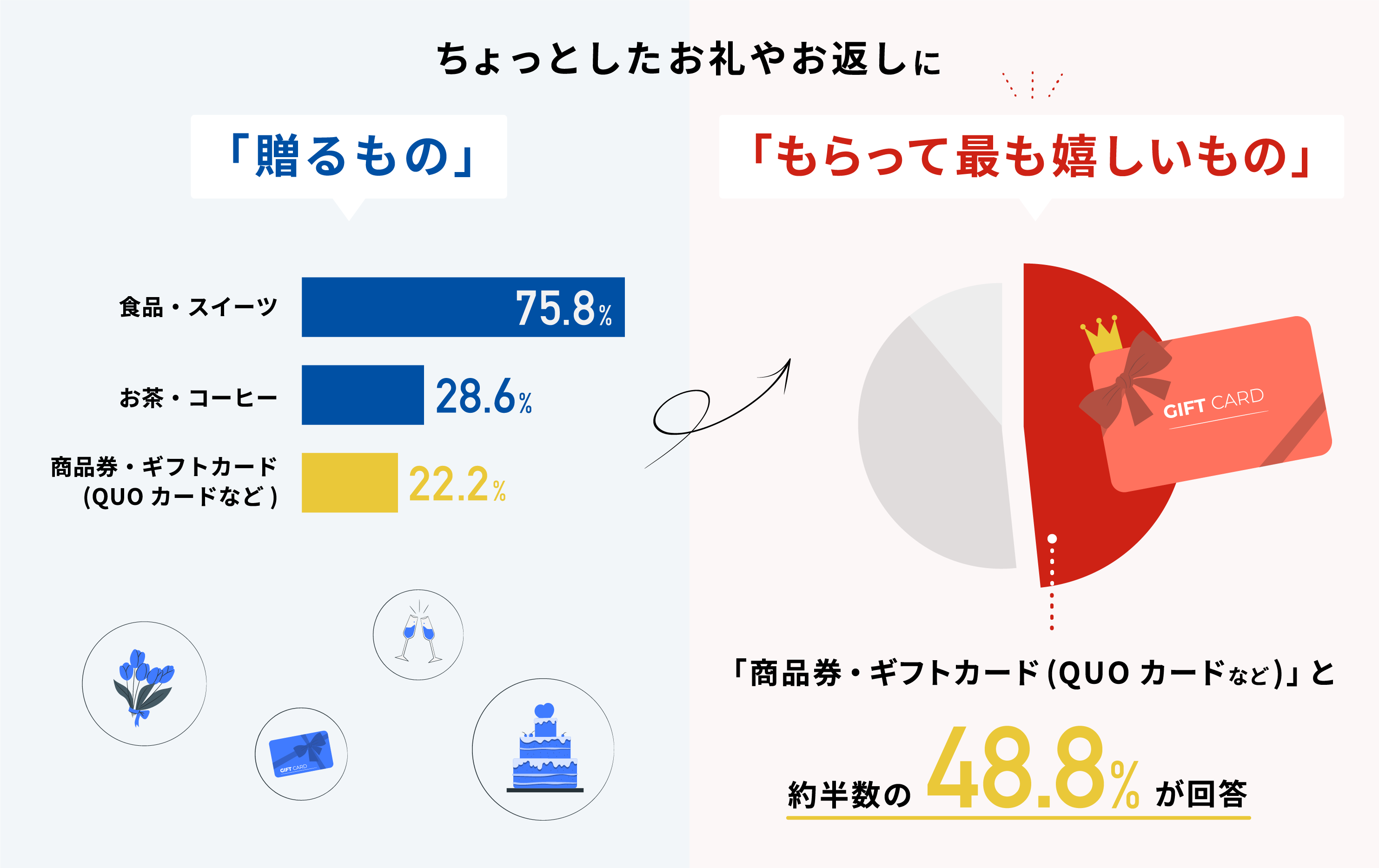 もらって最も嬉しいものは「商品券・ギフトカード(QUOカードなど)」!約2人に1人が回答