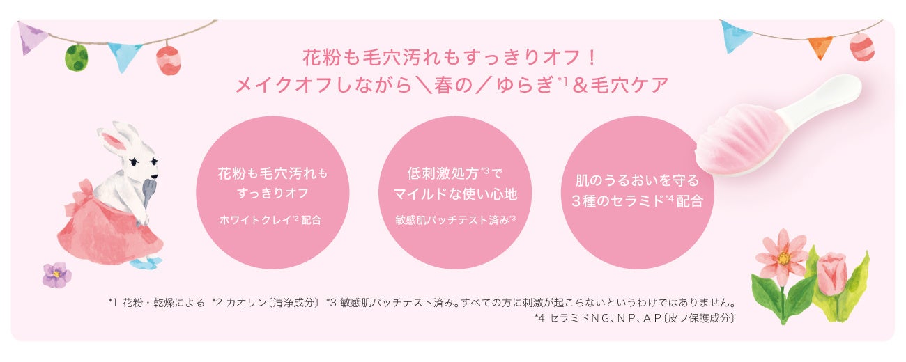 デリケートな肌を考えた低刺激*2設計で、メイクや毛穴汚れを落としながら春のゆらぎ肌*1をケアします。