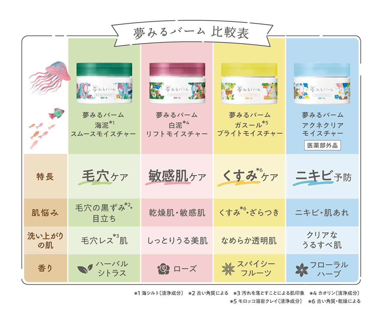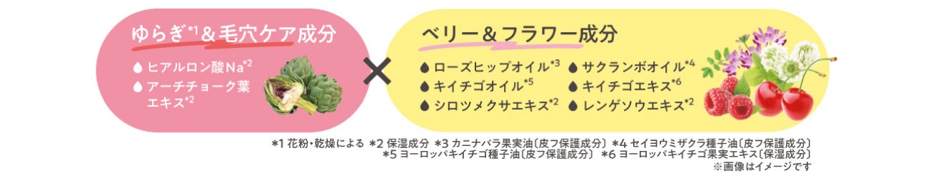 *5 パルミチン酸エチルヘキシル、炭酸ジカプリリル〔皮フ保護成分〕 *6 シクロヘキサン-1,4-ジカルボン酸ビスエトキシジグリコール 〔メイク落とし成分〕