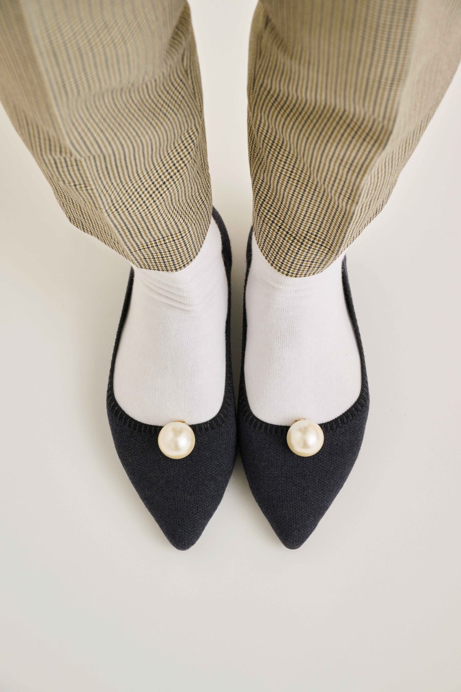 パール付きウールポインテッドパンプス