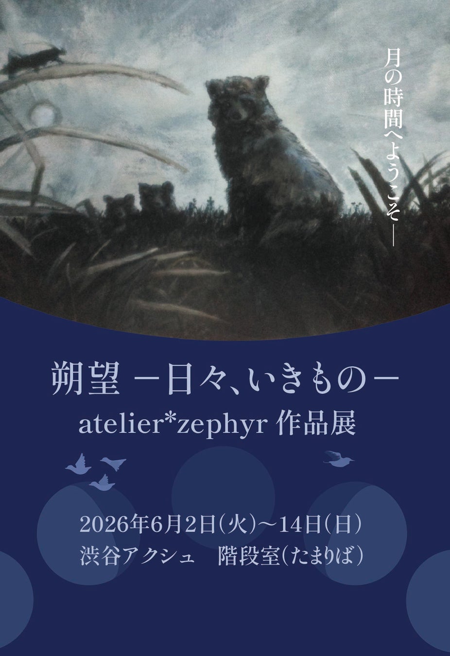 株式会社シアターワークショップ(東京都渋谷区)は、運営・管理をしている渋谷アクシュ3階のユニークなレンタルスペース「階段室(たまりば)」(所在地:東京都渋谷区)にて、画家・イラストレーターのatelier*zephyr(アトリエ・ゼファー)氏による作品展『朔望 ―日々、いきもの―』を2026年6月2日(火)~14日(日)にかけて開催いたします。