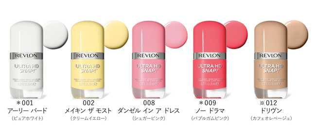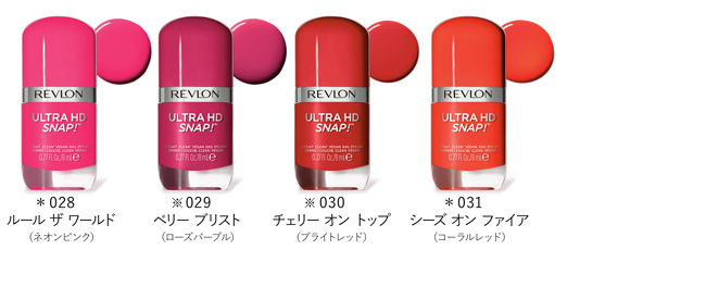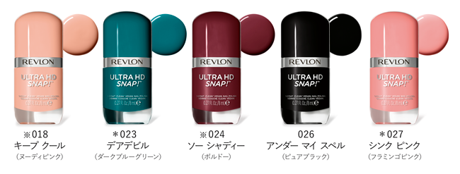 ひと塗りで、速乾&高発色!ヴィーガンネイルが定番化 『レブロン ウルトラ HD スナップ!』<新製品>全9色 <限定色>全1色 <オンライン限定/先行発売色>14色 各1,100円(税込)