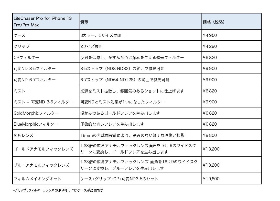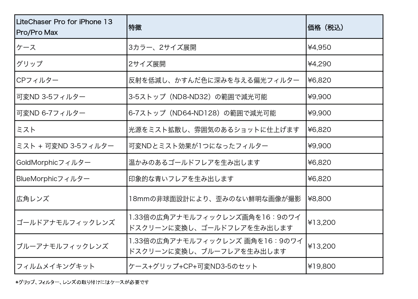 | フィルムメイキングキット | ケース+グリップ+CP+可変ND3-5のセット | ¥19,800 |