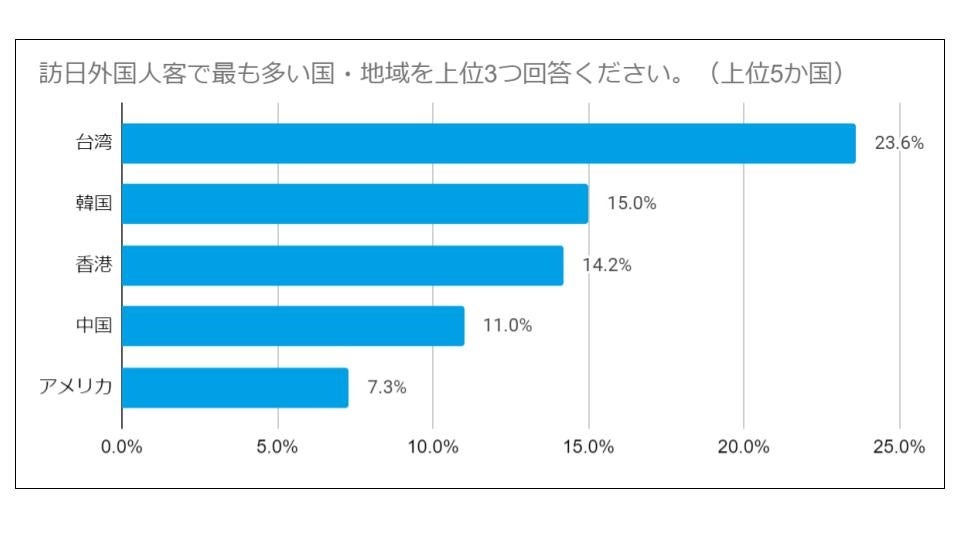 2-1:訪日外国人客で最も多い国・地域、上位3つを回答してください。(上位5か国)