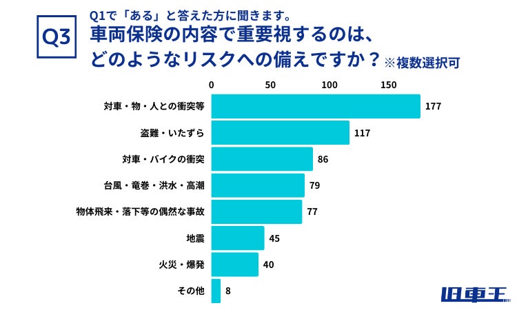 Q3.Q1で「ある」と答えた方に聞きます。車両保険の内容で重要視するのは、どのようなリスクへの備えですか?※複数選択可