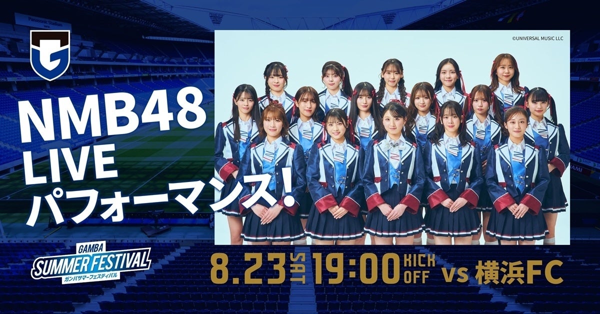 8/23(土)明治安田J1リーグ 第27節 横浜FC戦にて、NMB48によるLIVEパフォーマンス開催が決定しましたのでお知らせいたします。今回、NMB48のキャプテンであり、MBS「ガンバTV〜青と黒〜」の番組MCも務める小嶋花梨さんを含む16名の選抜メンバーによる特別なステージが実現しました。試合前とハーフタイムの2回にわたり、熱くパナスタを盛り上げていただきます!