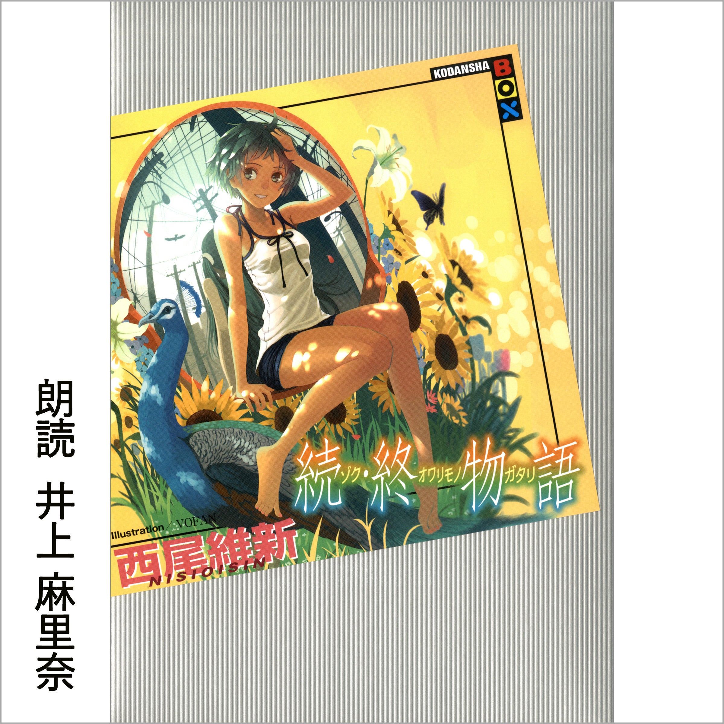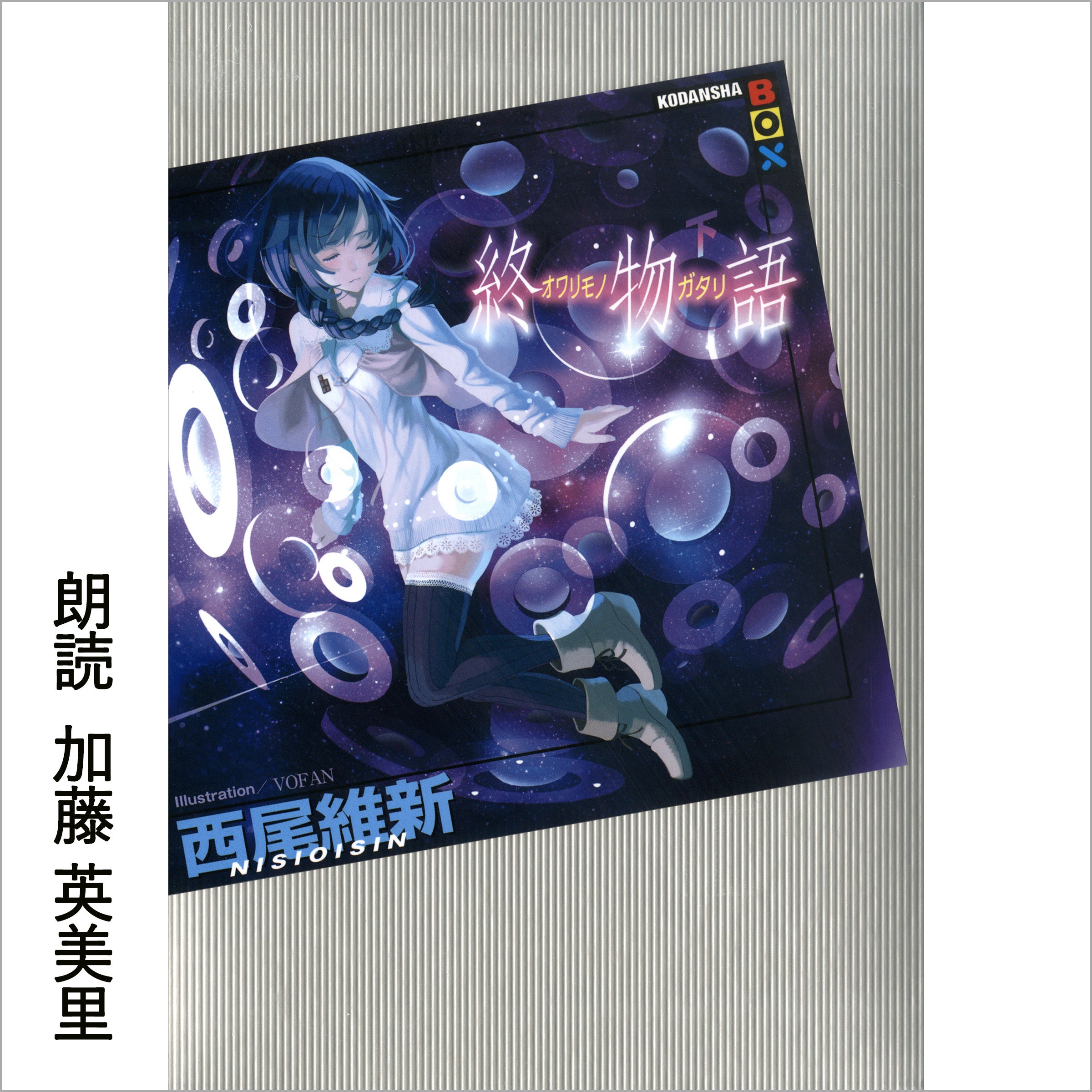 「ファイナルシーズン」では、『憑物語』 を影縫 余弦役の白石涼子さん、『暦物語』を斧乃木 余接役の早見沙織さん、『終物語(上)』を忍野 扇役の水橋かおりさん、『終物語(中)』を戦場ヶ原 ひたぎ役の斎藤千和さん、『終物語(下)』を八九寺 真宵役の加藤英美里さん、『続・終物語』を老倉 育役の井上麻里奈さんが朗読を担当しており、配信日以降聴き放題対象作品としてお楽しみいただけます。「オフシーズン」以降の朗読担当声優は後日発表予定です。
