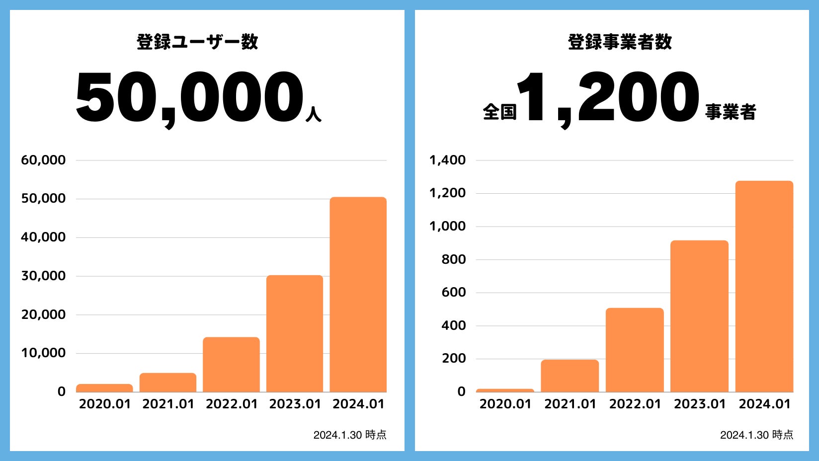 登録ユーザー数は5万人受け入れ先は 全国47都道府県1,200事業者に拡大
