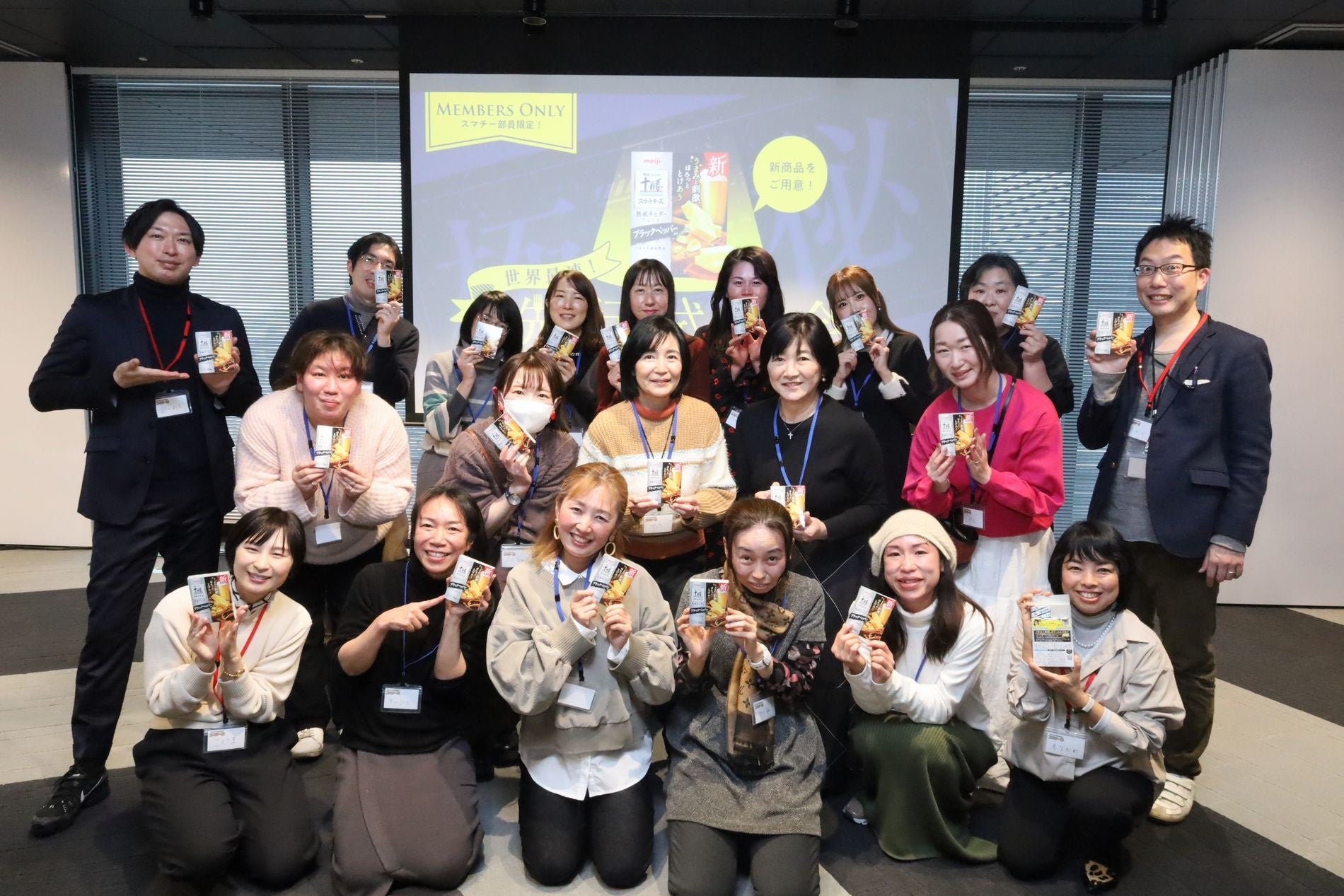 さる2024年2月23日、スマチー部の活動の一環として5年ぶりに発売された新商品「明治北海道十勝スマートチーズ熟成チェダーブレンドブラックペッパー入り」の「世界最速! 先行試食会」が開催され、当日は、抽選であたった約20名の部員が参加しました。