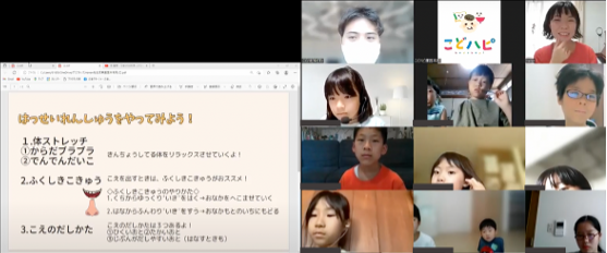 シンガーソングライターとしても活躍しているプロのボイストレーナーnanan先生が、オンライン上で子ども達に歌を歌うときのポイントや声の出し方などの指導をいたしました。