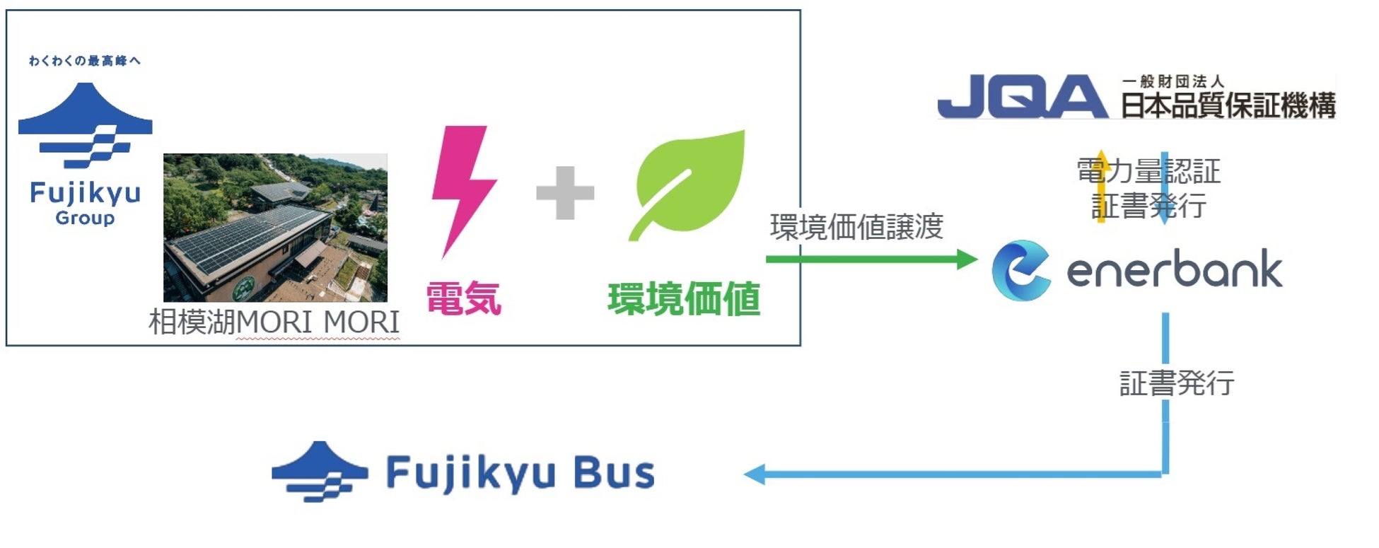 株式会社エナーバンク(共同創業者 代表取締役:村中 健一、本社:東京都中央区)は、富士急行株式会社(山梨県富士吉田市、取締役社長:堀内光一郎)のグループ施設である、神奈川県相模原市のレジャー施設「さがみ湖MORI MORI」に設置された太陽光発電設備由来の環境価値をグリーン電力証書化し、富士山の麓から五合目をつなぐ有料道路「富士スバルライン」にて行われる自動運転EVバスの実証運行におけるカーボンフリー化を実現します