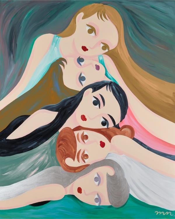中村は1991年東京都生まれ。桑沢デザイン研究所ヴィジュアルデザイン科を卒業した後にグラフィックデザイン事務所を経て、現在はアーティスト/イラストレーターとして活動しています。国内やアジア各国での展示の他、広告、装画、雑誌、音楽、アパレルブランドのテキスタイルなど多岐に渡り手がけています。彼女の作品は、独自の世界観で表現したエモーショナルな「女性像」と、生物的な特徴をもつ「草花」がモチーフとなっています。日々、思ったことや感じたことをメモに残し、その言葉から思い描く世界をキャンバスやドローイング、立体作品とメディウムを変えながら落とし込んでいます。そして力強い筆致で描かれた無表情な女性は魅力的な雰囲気を身に纏い、わたしたちに何かを訴えるかのようにさえ感じさせる余白があります。