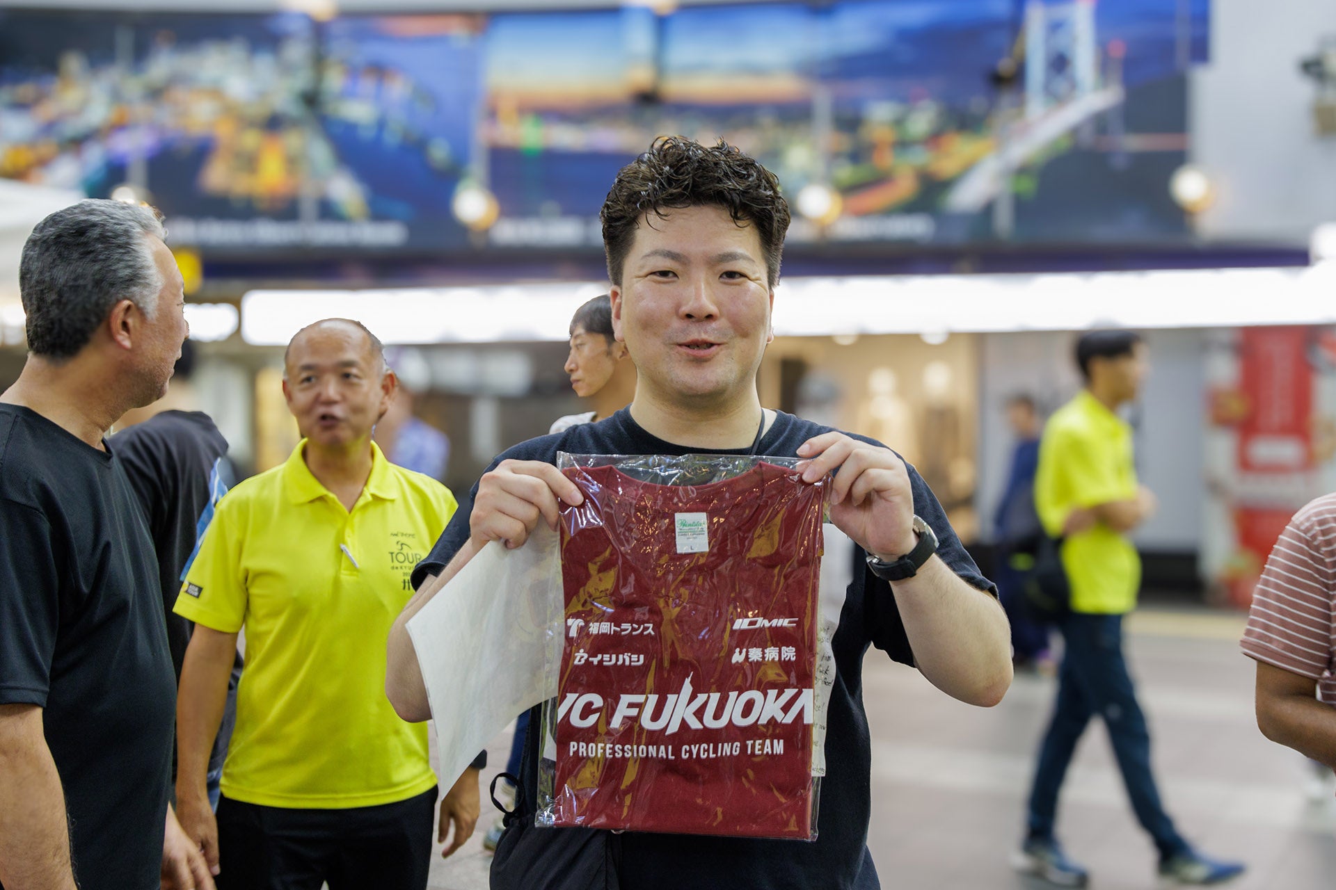 VC FUKUOKA応援Tシャツのプレゼント企画も、大いに盛り上がりました。前述のトークショーを聞いて「実際に大会に行きたい!」とお申し出いただいた方々に対してプレゼント。