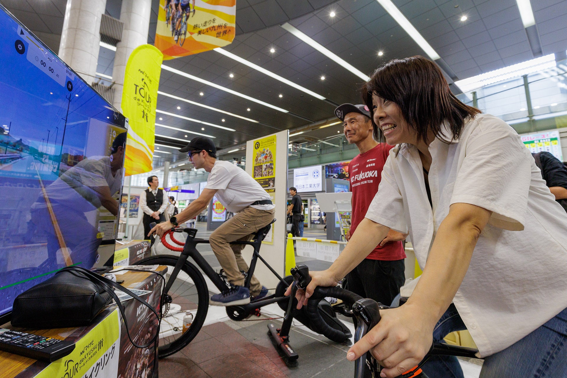 大人気だったVC FUKUOKAのバーチャルサイクリング体験ブース