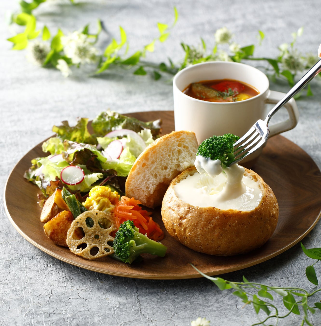 またフードメニューでは、チーズガーデンのフード人気NO.1商品『チーズパンデュ』が選べるスープ付きで登場、限定メニューとして2種のキッシュが楽しめるキッシュプレートや、チーズと一緒に楽しめるパスタが新登場いたします。ドリンク、スイーツ、フードと取り揃えておりますので、ランチやティータイムの休憩などでご利用いただけます。