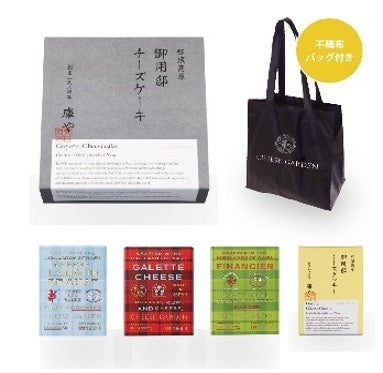オープンを記念して人気商品が一度にお楽しみいただける、オープン記念ハッピーバッグを販売いたします。しっとりとした食感と濃厚な味わいで人気の『御用邸チーズケーキ』をはじめ、2種のチーズの味わいとブラックペッパーのアクセントが楽しめる『御用邸チーズクッキー』、そして人気の焼菓子3種類の合計5種類のスイーツをチーズガーデンオリジナルのバッグとセットにしました。チーズガーデンの人気商品が一度にお楽しみいただけるお得なセットです。数量限定での販売になりますので、ぜひお早めにお立ち寄りください。