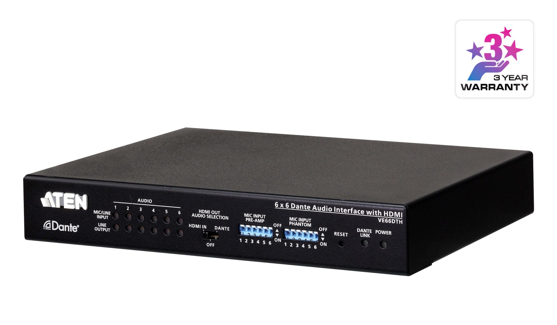 ・6入力6出力Danteオーディオインターフェース(HDMI対応)