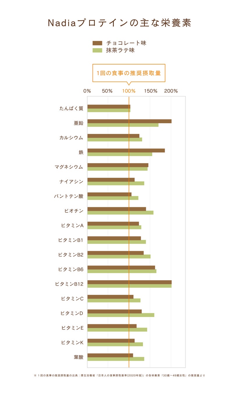 Nadiaは、そんなお悩みに寄り添いたいという想いから、女性の1食分の栄養補給をサポートするプロテイン「Nadiaプロテイン」を開発しました。