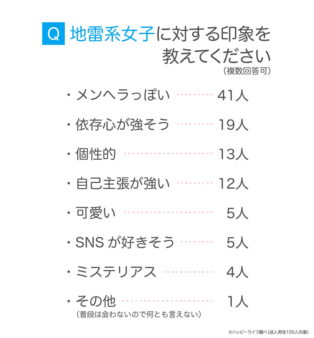 ハッピーライフでは、成人女性100人を対象に「自分は地雷系女子だと思いますか?」というアンケートを取りました。