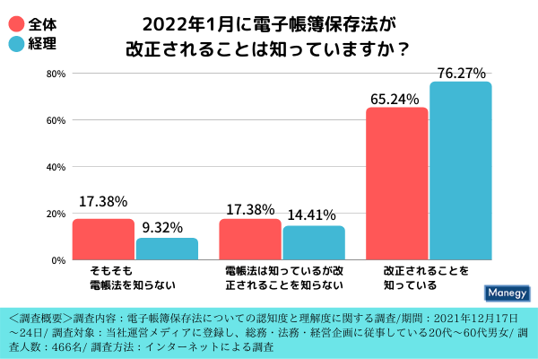 株式会社MS-Japan(本社:東京都千代田区 代表取締役社長:有本隆浩/以下MS-Japan 証券コード:6539)は、同社が運営するビジネスメディア『Manegy(マネジー)』にて、電子帳簿保存法についての認知度と理解度について調査しました。