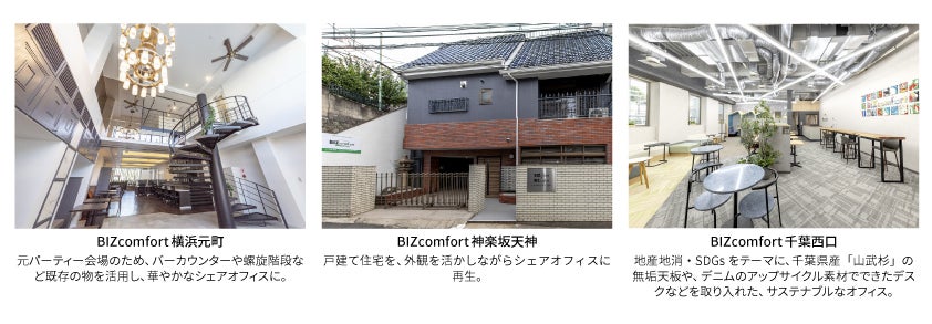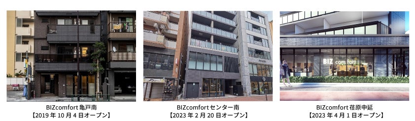 『BIZcomfort 亀戸南』と『BIZcomfort センター南』は、マンションの 1 階部分に位置する“究極の職住近接型シェアオフィ ス”です。自宅と職場が同じ建物内にあることで、通勤に係る時間が実質ゼロになるうえ、在宅勤務では難しいオンとオフの切り 替えが簡単にできるようになります。さらに 2023 年 4 月 1 日には、最寄り駅から徒歩 1 分の新築マンションの 1 階部分に 『BIZcomfort 荏原中延』がオープンしました。