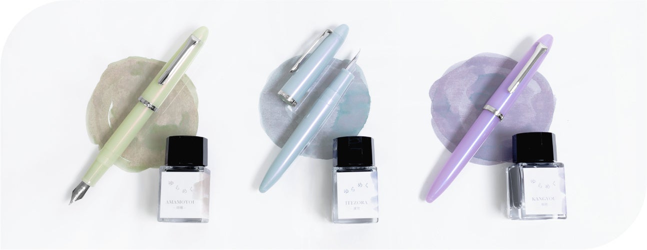 これ1つですぐに始められる、万年筆とコンバーターとミニボトルインクのセット! 『プロフィットJr.+10 ゆらめく』第二弾