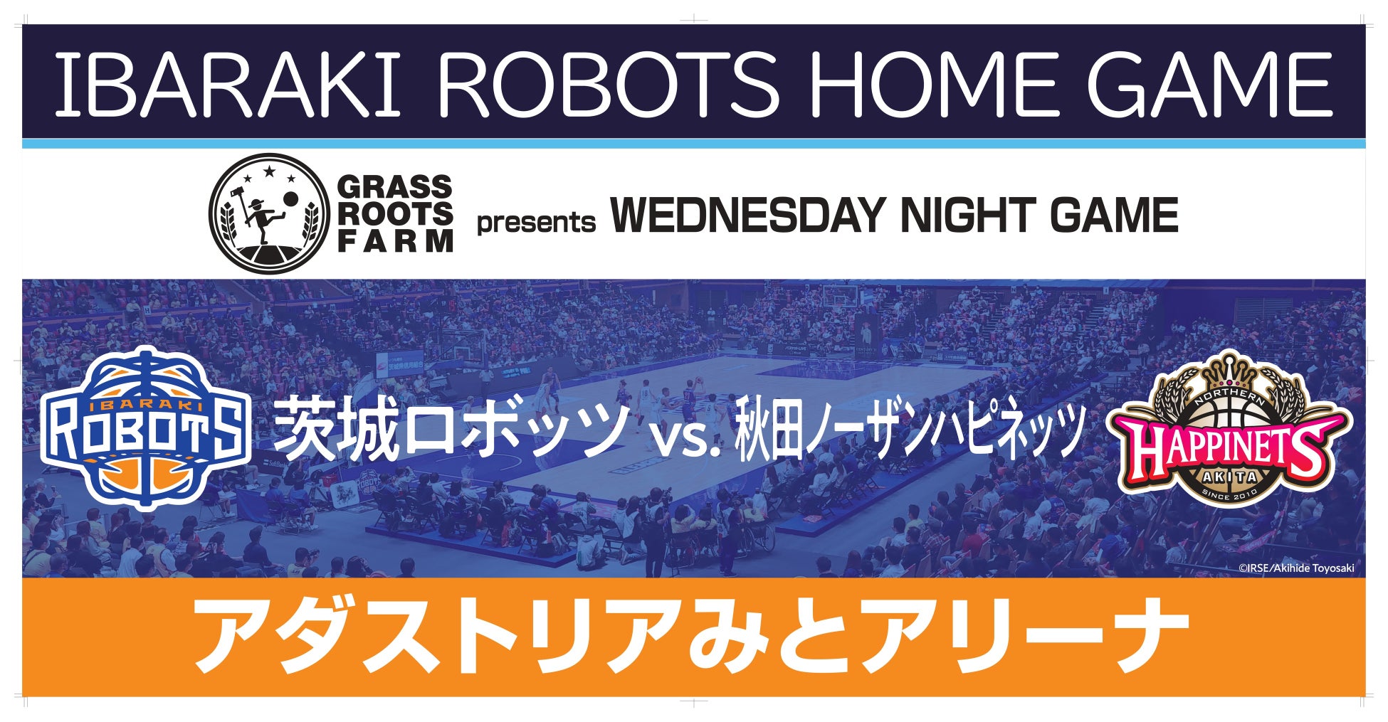 このたび水戸ホーリーホックが展開する農事業ブランド「GRASS ROOTS FARM」が、2/2(水)に行われる プロバスケットボールリーグ"B リーグ"2021-22 シーズン B1 リーグ戦茨城ロボッツ vs.秋田ノーザンハピネッ ツ(会場:アダストリアみとアリーナ)にて冠試合「 GRASS ROOTS FARM presents WEDNESDAY NIGHT GAME」を実施することとなりました。 つきましては、「GRASS ROOTS FARM」の今後の事業展開や、当日のイベント概要、スポーツチームがスポーツ チームの冠試合を行うという試みに関してのご説明をお伝えすべく、記者発表の場を設けさせていただきます。