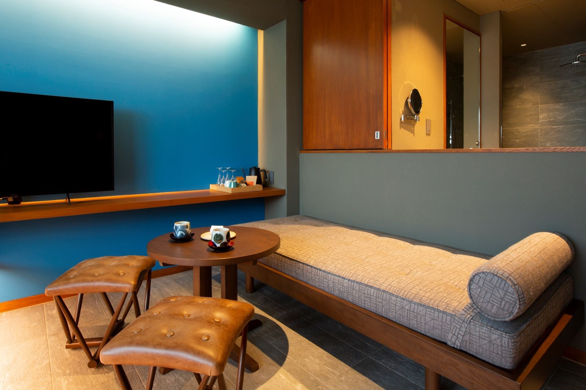 畳の小上がりが印象的な和と洋が織りなす空間は、最大4名様までご利用いただける広々としたデラックスルームです。壁際に設えたソファーで寛ぎ、コーヒーやお茶を飲みながらおしゃべりに花を咲かせる、だんらんのひとときをお過ごしいただけます。
