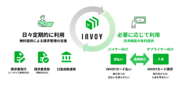 2022年からは、BtoB向けカード決済サービス「INVOYカード払い」「INVOYカード請求」や「請求書のデータ化」といった決済関連機能の強化に注力してきました。これにより「INVOY」は、日々の請求・支払管理や決済、資金繰りまで、事業の入出金に関する手続きがワンストップで行えるプラットフォームとして進化しています。