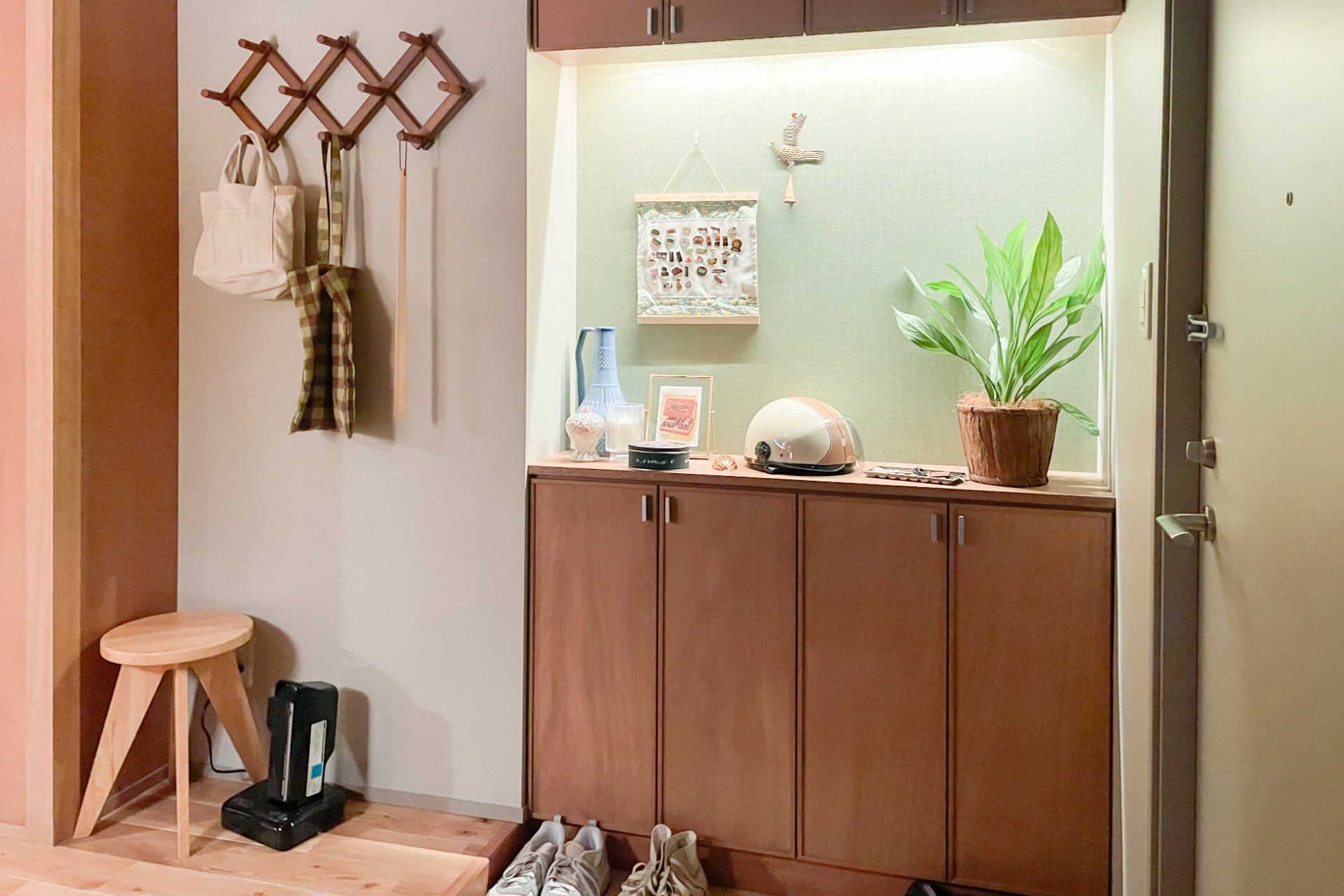 一方、ヒロインの部屋は、ナチュラルな木の風合いや淡い色合いが印象的な心地よい空間。玄関にはスツールを、リビングなどには優しい明かりのデスクランプが配置され、日常に寄り添う暮らしのシーンを演出しています。
