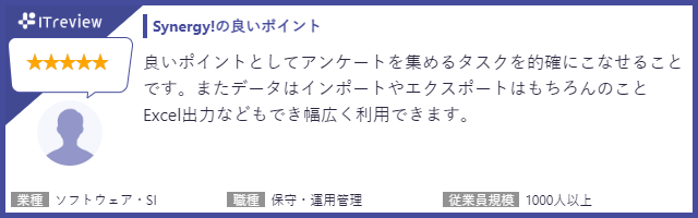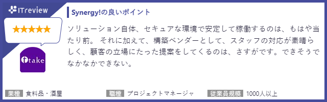 ITreviewに投稿のあったSynergy!ご利用のお客様からのレビューの一部を紹介します。