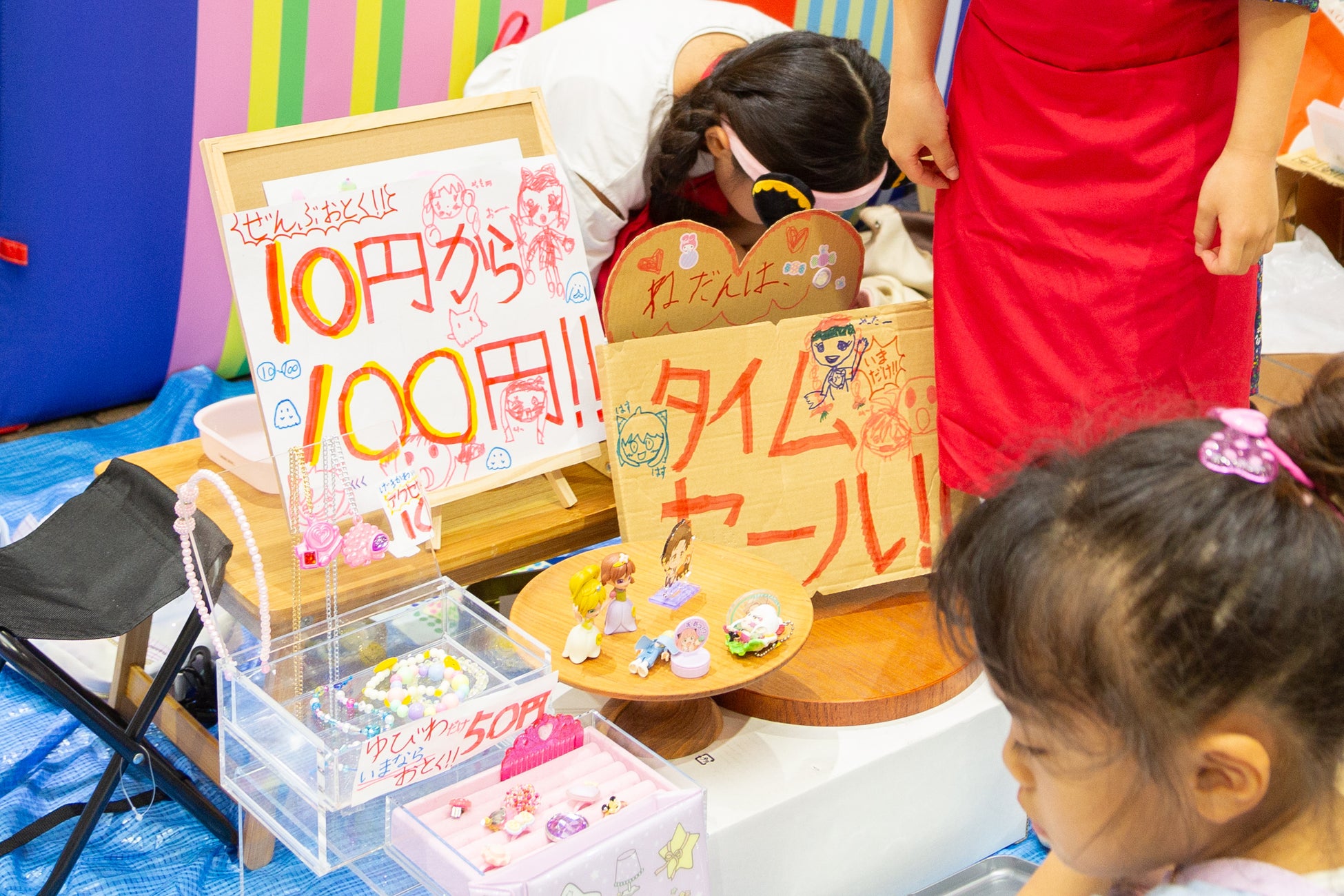 子どもたちだけで物の売り買いを行い、お金の価値や使い方を楽しく学ぶことができるフリーマーケットを開催します