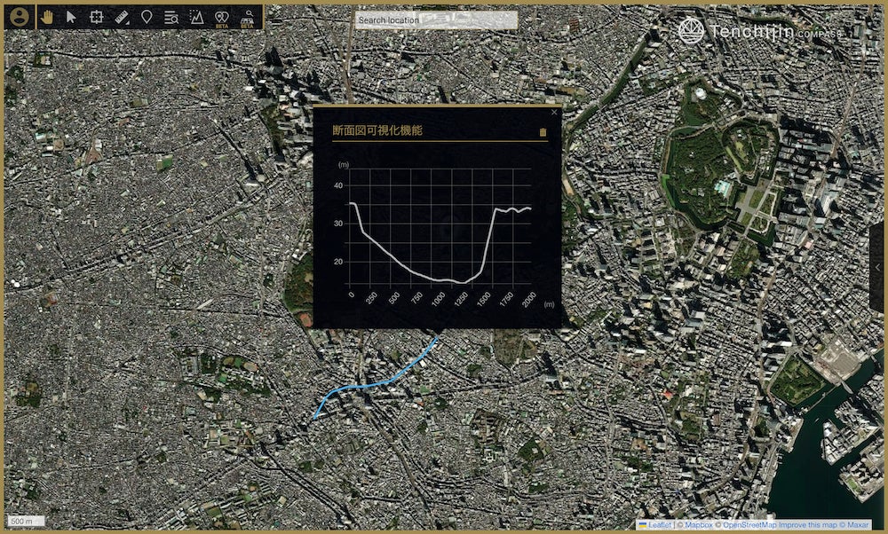 JAXA認定の宇宙ベンチャー 株式会社天地人(東京都中央区 代表取締役 櫻庭康人)は、宇宙ビッグデータを活用したWebGISサービス「天地人コンパス」に「断面図可視化ツール」を追加しました。
