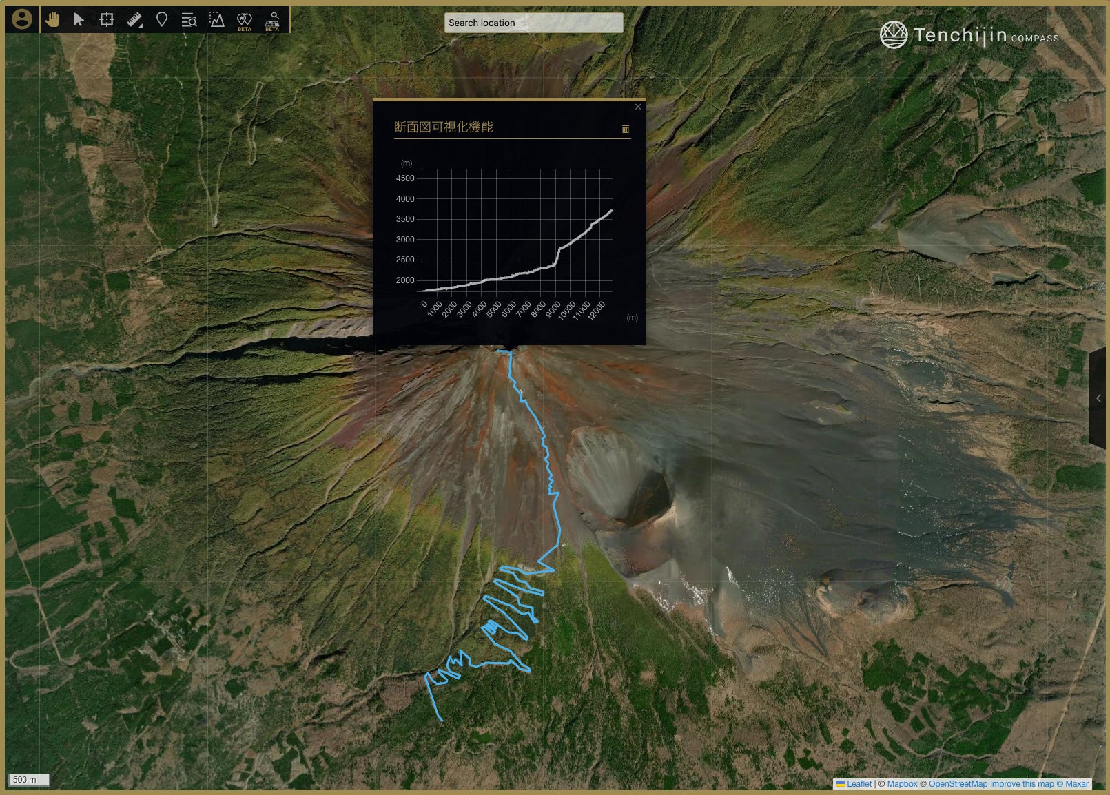 JAXAベンチャー天地人、宇宙ビッグデータを活用したWebGISサービス「天地人コンパス」に「断面図可視化ツール」を追加。地球上のあらゆる坂道の計測が可能に。