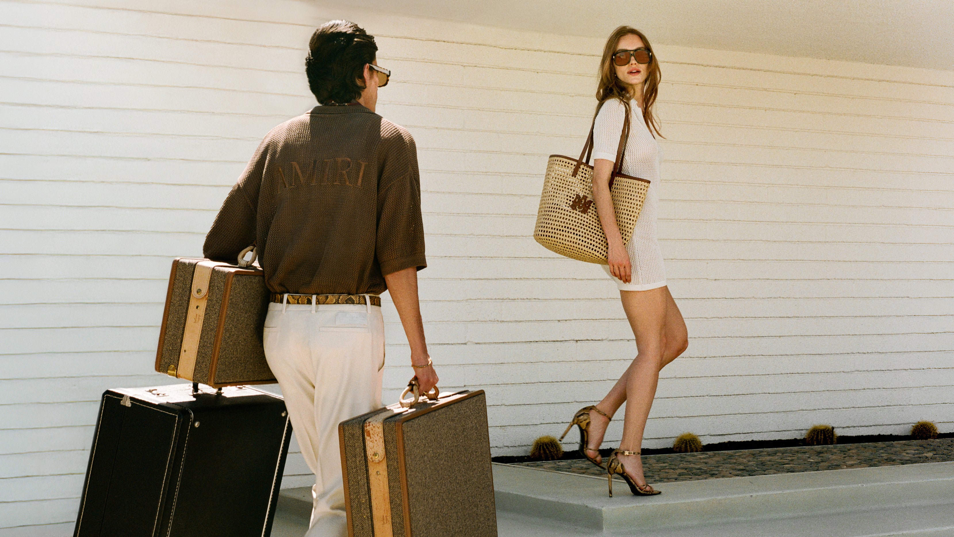 終わることのないカリフォルニアの夏が持つ永遠のムードを、AMIRI(アミリ)の視点で再解釈したハイサマー コレクション。今季、アミリのキャラクターたちは州を横断し、パームスプリングスへと向かいます。年間を通して太陽が降り注ぐこの地は、古くからハリウッドからの華やかで理想的な逃避先であり、訪れる人々の個性によって形づくられてきた静養先です。