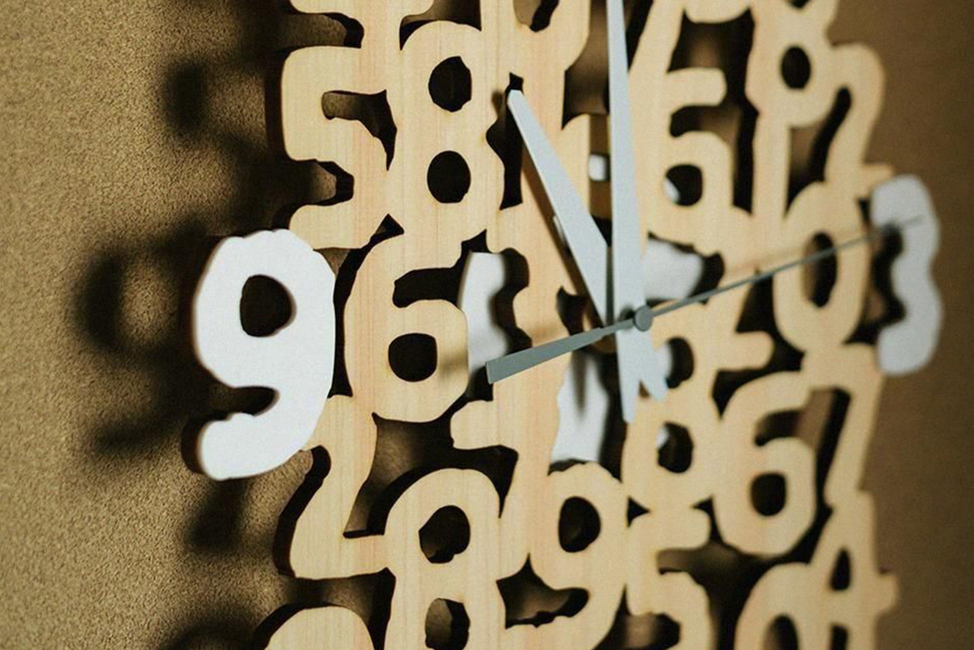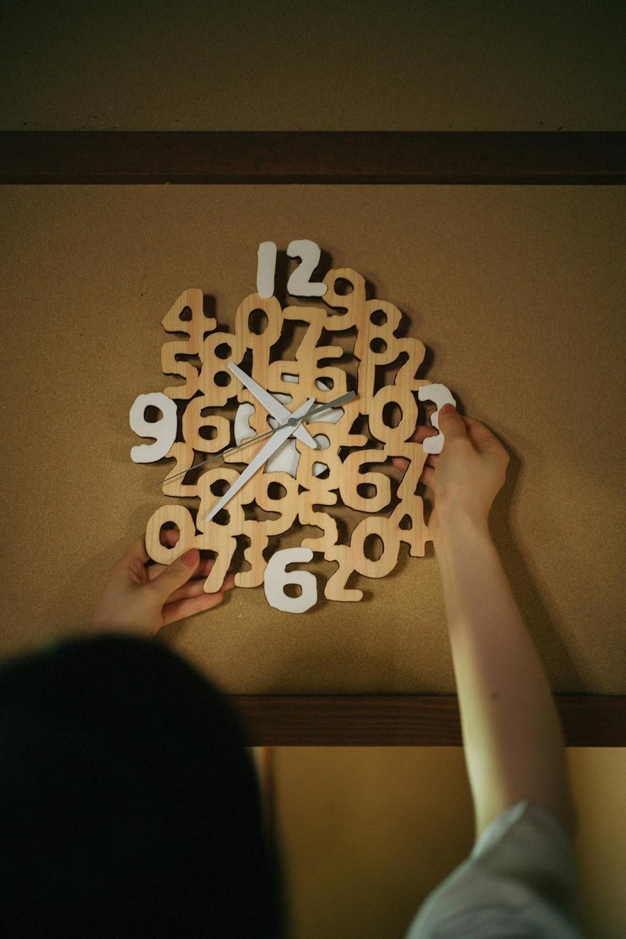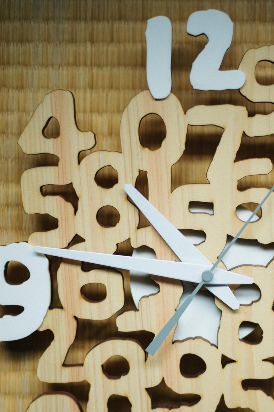 「SO-SU-U」を巧みに切り出した文字盤は、壁に掛けると美しい影を落とします。