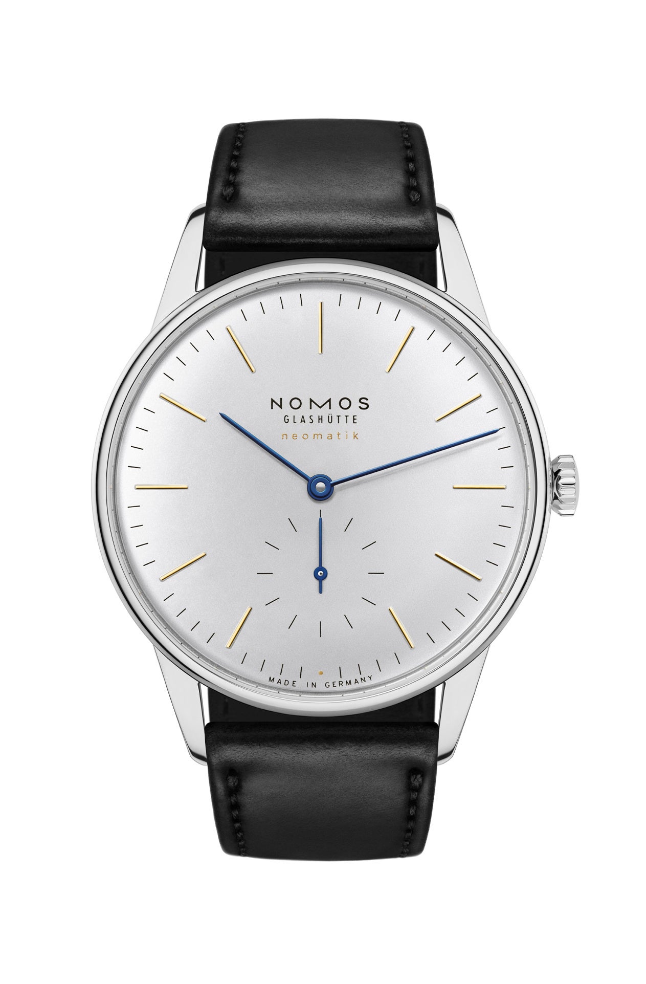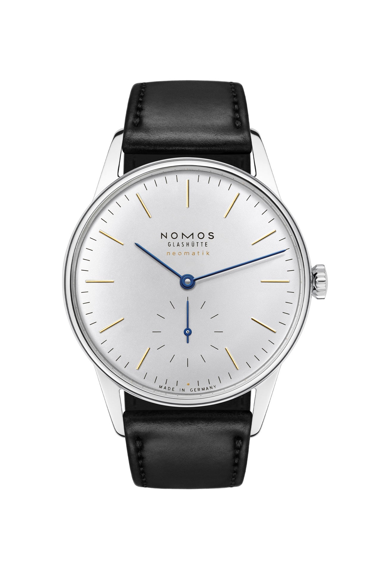 シルバーメッキの文字盤にゴールドのインデックスと青焼きの針がグラスヒュッテの時計作りの伝統にオマージュを捧げながら、ドーム状の文字盤、レンズ状のケース、革新的なムーブメントで、オリオンネオマティックは未来を見ています。