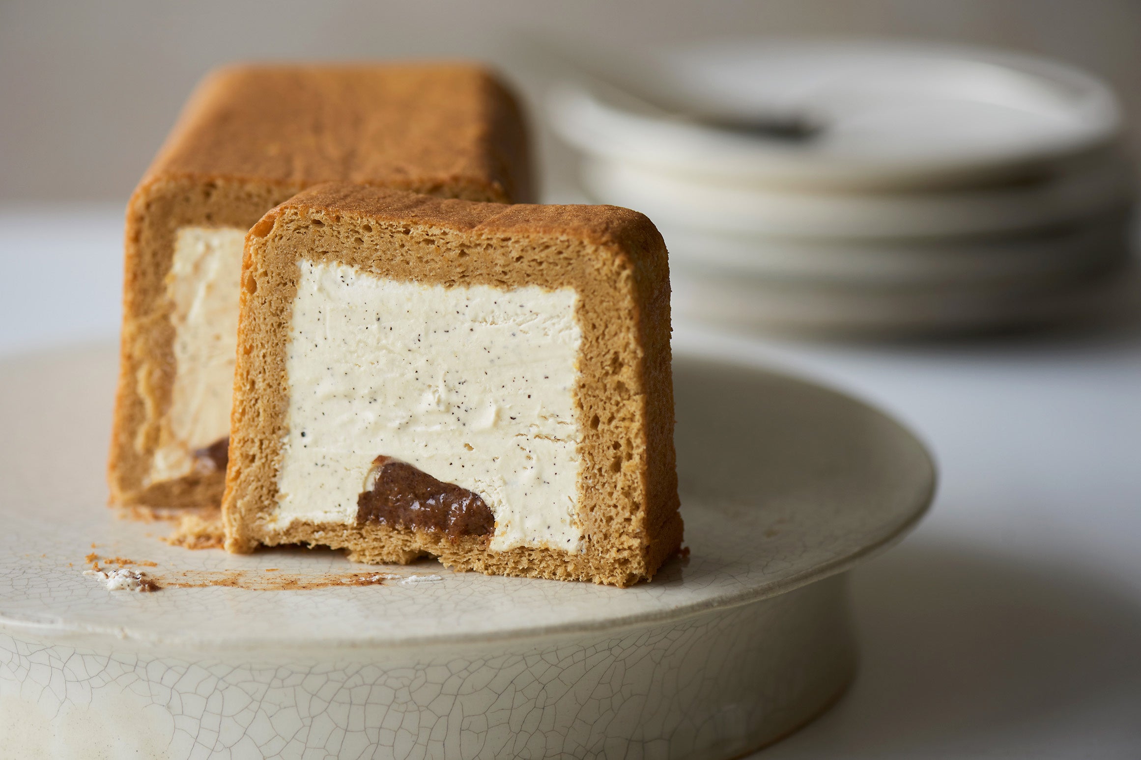 しっとり感とふんわり感を両立させた今までにない食感のロールケーキ。クリームは、貴重な烏龍茶「武夷岩茶」を加え、旨味と香り、コクのある味わいに仕上げました。おすすめの食べ方は、ケーキの底に忍ばせたプラリネが溶け出す全解凍。しっとりでふんわりとした食感をご堪能ください。
