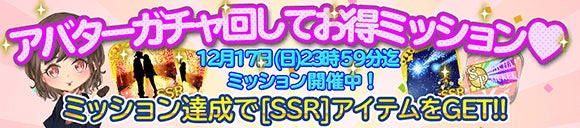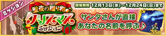 聖夜の贈り物♪『クリスマスミッション』開催!「[SSR]聖夜の願いごと」アイテムをclub恋下で使用した数によって、貴女を愛するサンタさんが、貴女の名前を呼んで聖夜のスペシャルな贈り物を届けてくれる♪