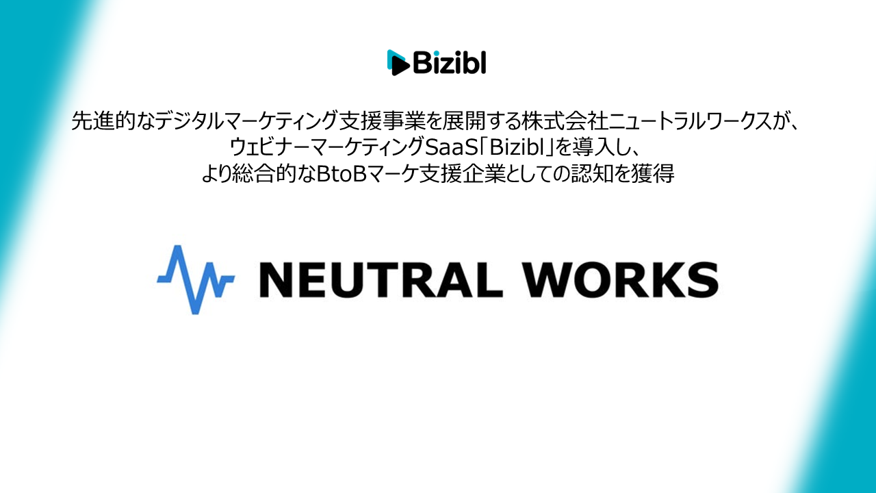 先進的なデジタルマーケティング支援事業を展開する株式会社ニュートラルワークスが、ウェビナーマーケティングSaaS「Bizibl」を導入し、より総合的なBtoBマーケ支援企業としての認知を獲得