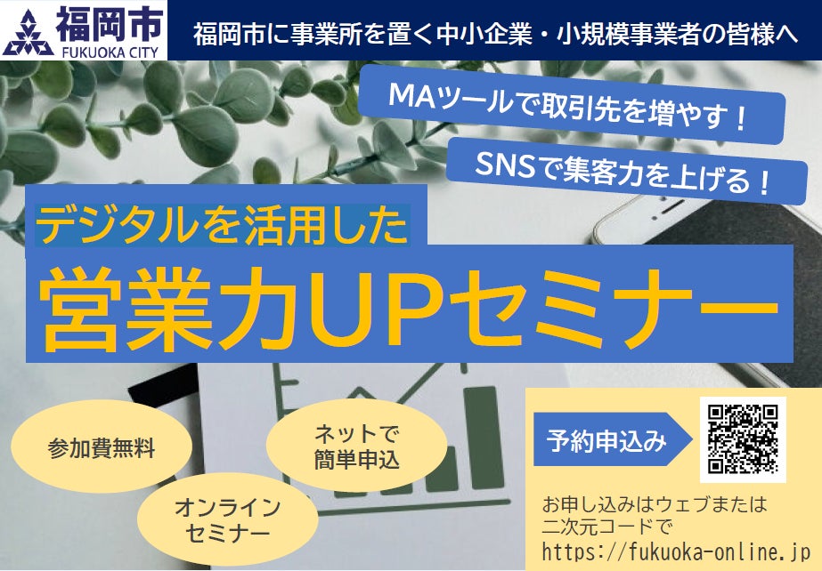 福岡市が行っている「中小企業デジタル化サポート事業」の一環として、無料オンラインセミナー「デジタルを活用した営業力UPセミナー」を9月12日に開催します!