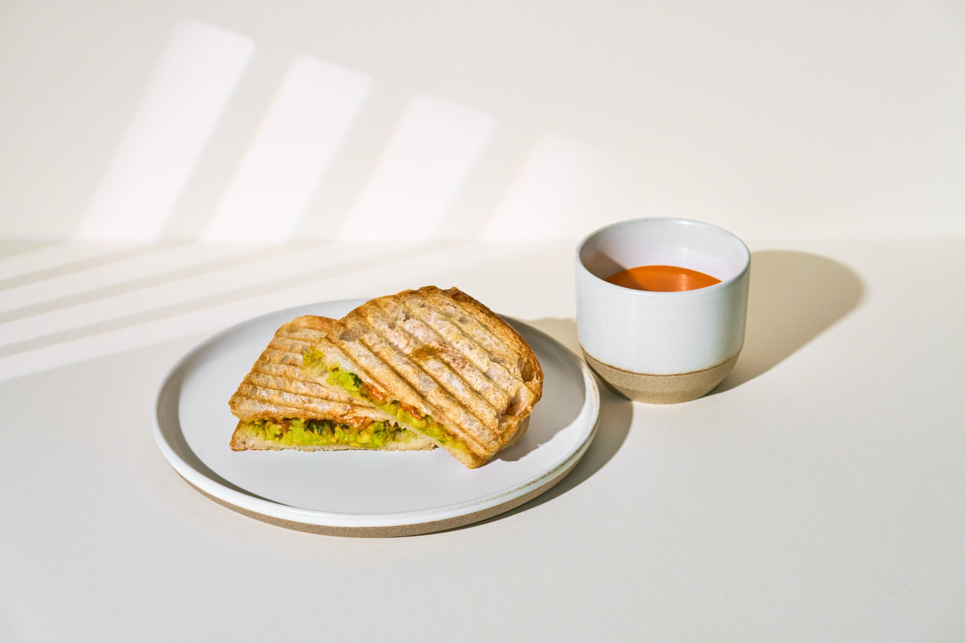 一部のカフェでご提供し、ご好評いただいているグリルドチーズサンドイッチ。季節に合わせた食材でご用意しており、名古屋ゲートタワーモールカフェオープン時は、丁寧に手作りしたワカモレとフレッシュの大葉を自社製のミックスチーズと一緒にグリルした、爽やかなサンドイッチをご用意しています。ご注文いただいてから焼き上げるので、同じく店内で仕上げる濃厚な味わいのトマトスープと共に焼きたてをお楽しみいただけます。