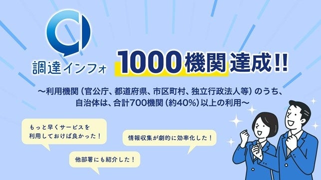 官公庁・自治体・独立行政法人向け購買調達サービス「調達インフォ」利用数 1,000機関を突破