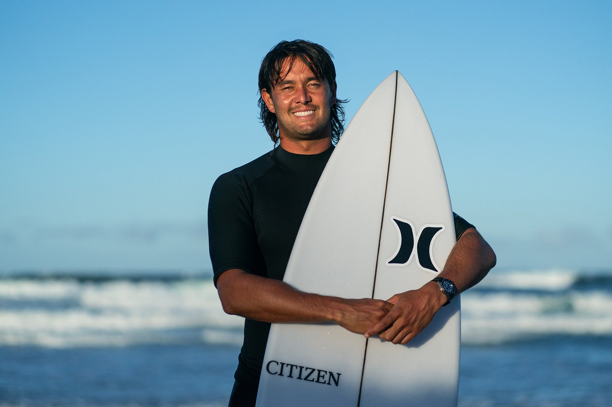 この度シチズン時計とスポンサー契約を結ぶことになりました。サーファーの僕が時計会社のサポートを受けるというのは新しいことですし、何よりシチズンという日本を代表する企業と契約できたことを大変光栄に思っています。サーファーにとって時計は波のタイミングや練習ドリルを計測するなど、なくてはならないアイテムです。そういった海の中での実用性の部分だけでなく、陸の上でのファッションアイテムとして着用できるシチズンが僕を応援してくれることはとても心強いです。プロサーファーとして更に結果を出せるよう、頑張りたいと思います。
