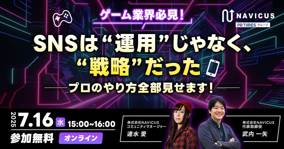 【7/16開催】NAVICUSが、無料ウェビナー「ゲーム業界必見!SNSは“運用”じゃなく、“戦略”だった──プロのやり方全部見せます!」を開催します
