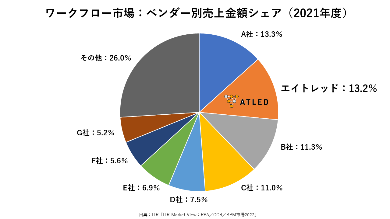 ITRによると、コロナ禍での在宅勤務の増加に伴うワークフローシステム新規導入やシステム拡張を背景にワークフロー市場は2021年度も拡大を続けており、引き続き好調の維持が見込まれることから、2022年度も前年度比13.8%増(※1)と予測しています。今後もエイトレッドは、他クラウドサービスとの製品連携や業務提携などのコラボレーション戦略や業種別の販売施策等を通じて、ワークフロー市場の拡大に一層注力してまいります。