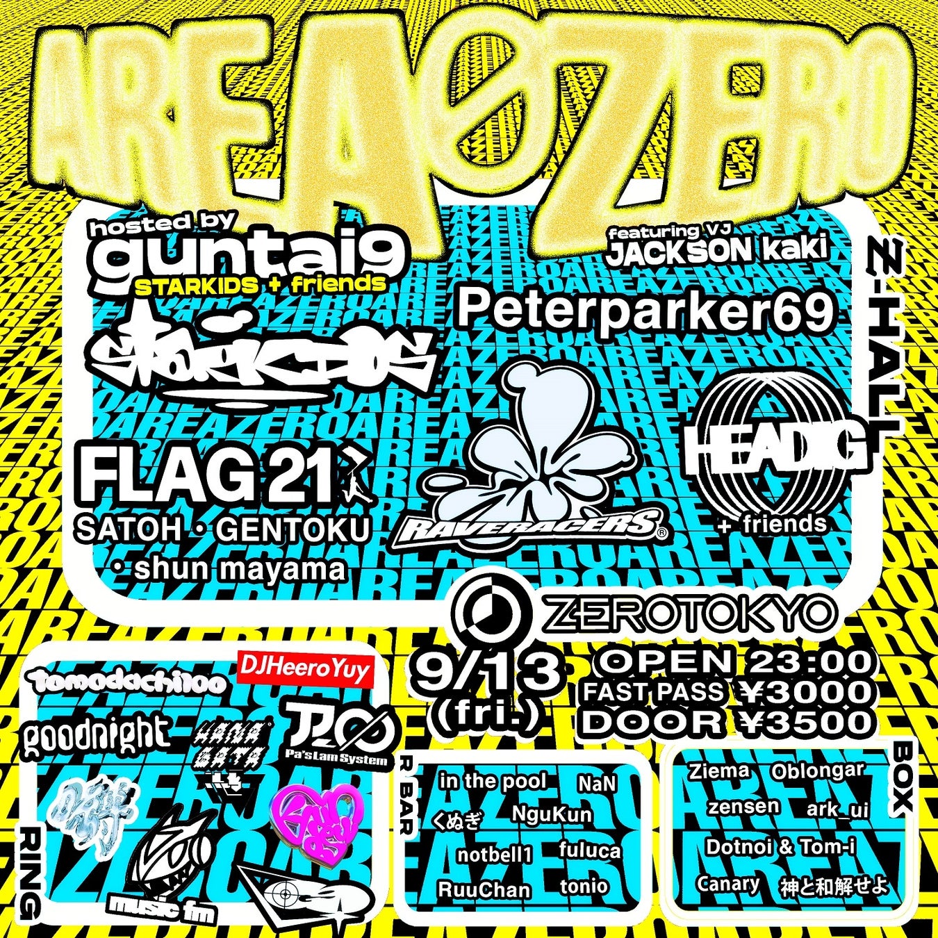 STARKIDS率いるレーベル・guntai9がホストする、東京のナイトカルチャーを彩るクルー、パーティー、アーティストが一堂に会するイベント『AREA ZERO』。