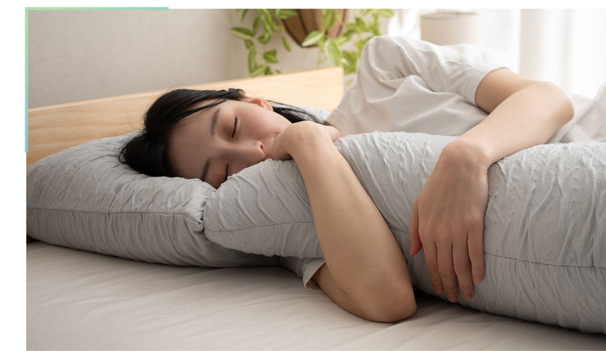 ボディピローに体重を分散させることで、体の負担を軽減。抱きかかえることで得られる安心感が、より深い眠りへと導きます。