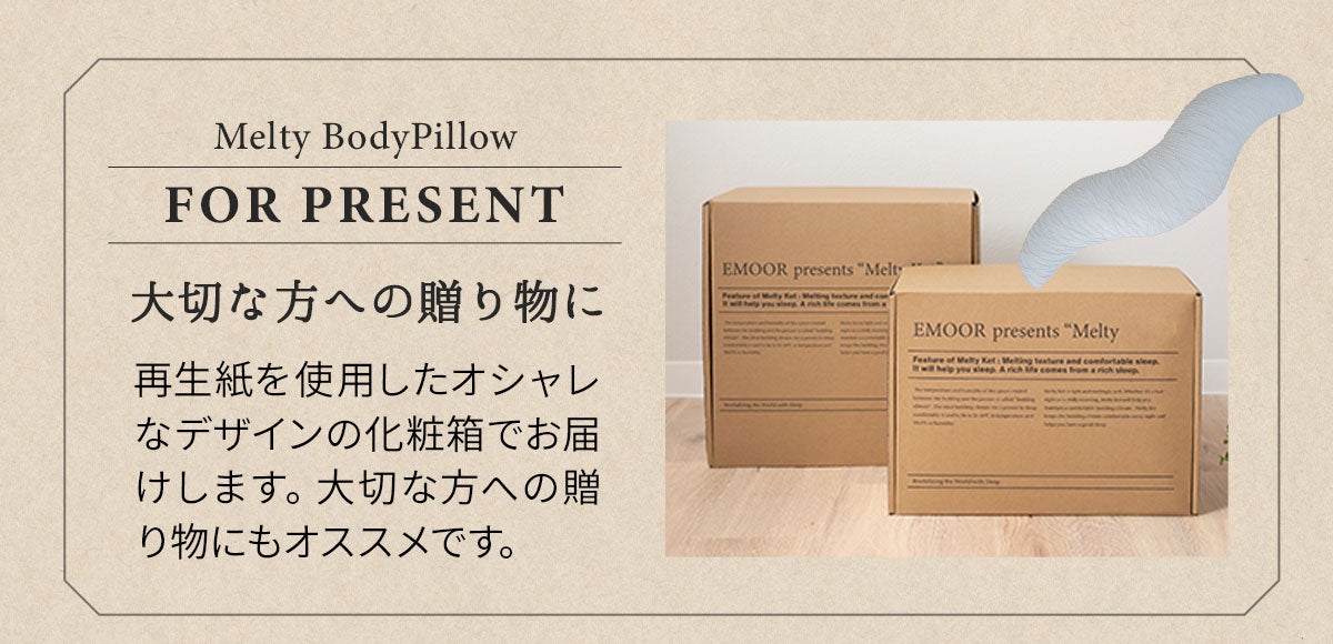 「身体に合った寝る・座る」を提供する健康家具ブランドEMOORを展開する株式会社エムール(東京都立川市:代表取締役 高橋 幸司/以下エムール)は、2025年2月26日より「メルティボディピロー」の販売を開始しました。フィット感抜群の独特な形状に、さらっとしていながら柔らかでとろけるような肌触りが特徴の「メルティケット」の生地を組み合わせました。洗濯機で丸洗いできるので、いつでも清潔です。
