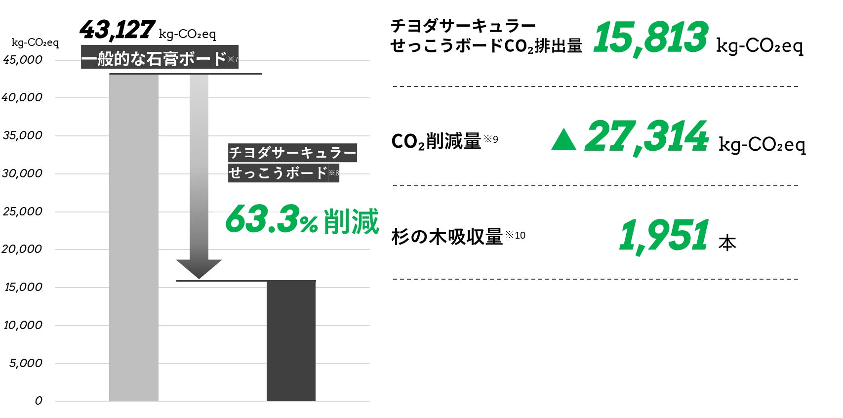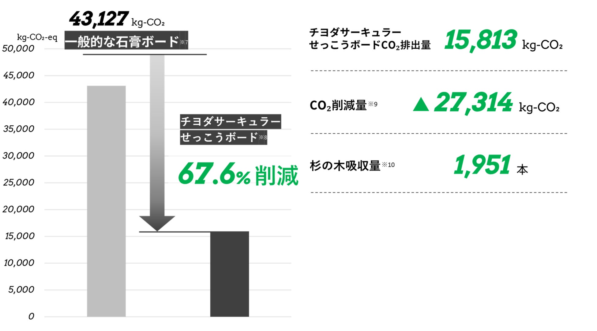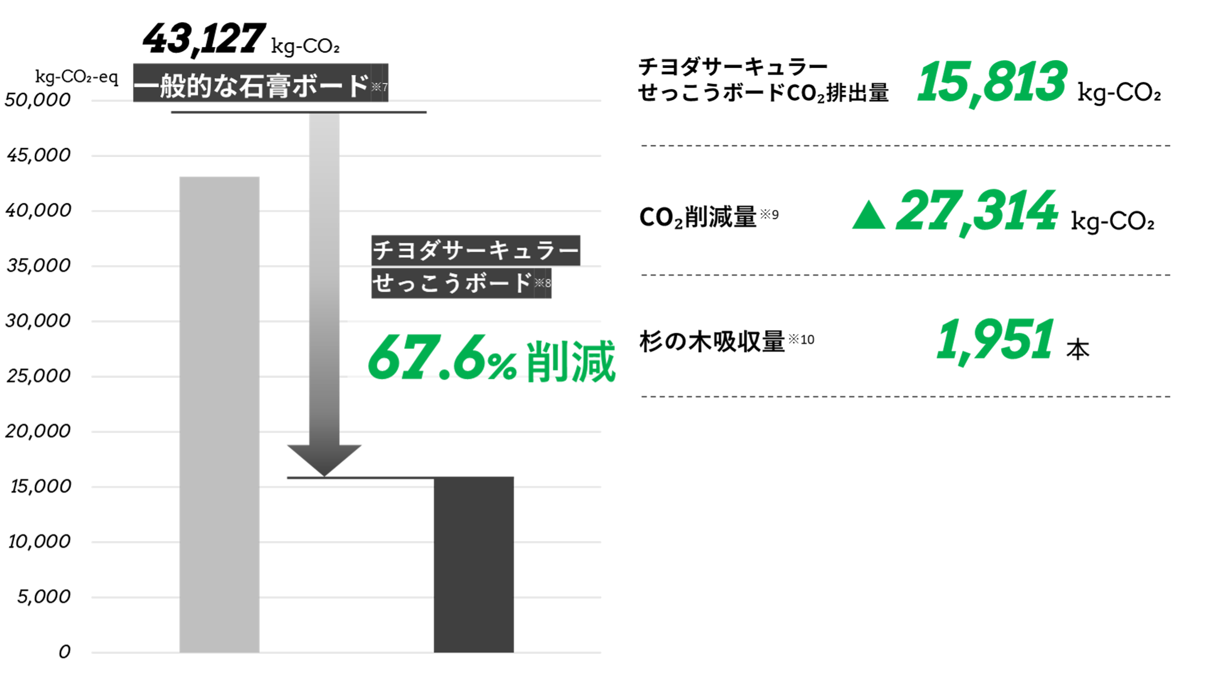 ※9.CO₂削減量 = J-CAT CO₂排出量 ー チヨダサーキュラーせっこうボードCO₂排出量